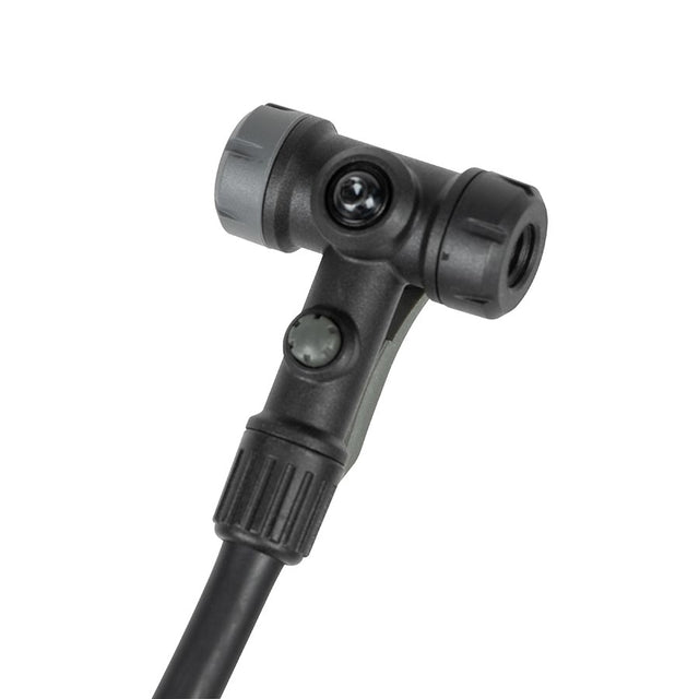 Bomba de piso Topeak Joeblow Mountain II - Barril de acero/Base de plástico, manómetro de 3,5", 60 psi/4 bar, doble cabezal