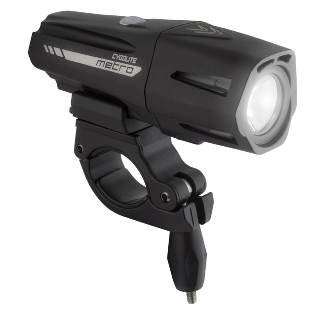 Cygolite Metro Plus 650 Rechargeable Headlight. Cut through the darkness with the Metro Plus series from Cygolite. Sporting a refined aggressive look it emits a powerful beam the road and trails providing long range extra wide coverage to maximize your line of sight. Not only limited to night the Metro Plus DayLightning mode makes you stand out in broad daylight to give you the advantage anytime and anywhere you ride.Features Enhanced Cycling Optics that cast an extra wide and long range beam compared to conventional lighting optics