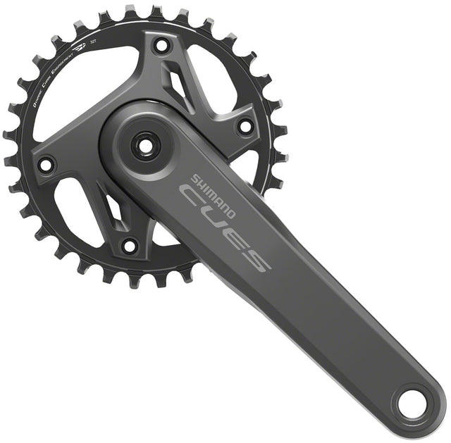 Shimano CUES FC-U6000-1 Crankset - 165mm 9/10/11-Speed 32t Asymmetric 110 BCD Black. Grow your confidence riding hard over the rough stuff with this Shimano CUES FC-U6000-1 cranksets wide-range gearing and seamless pedaling.Dynamic Chain Engagement+ special gear tip shape improves chain engagement and retention for smooth riding over rough terrain